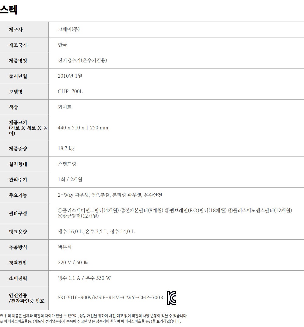 코웨이 72개월 72개월 60,100 원 방문관리 [방문주기 2개월][A/S 렌탈기간내 무상] 최대
