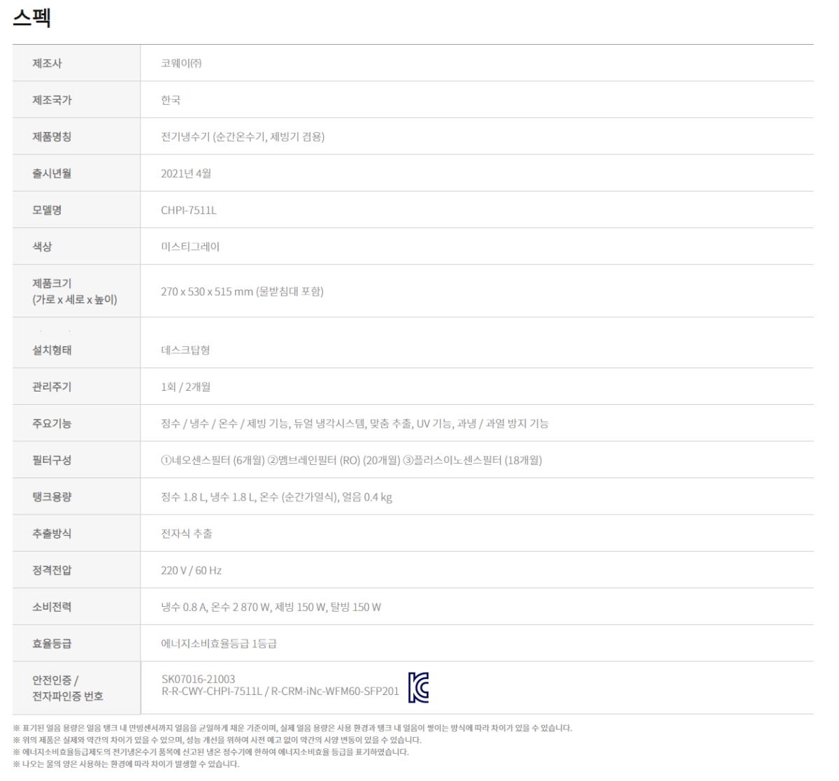 [쿠쿠] 끓인물 100도 제로백 얼음냉온정수기 하프형