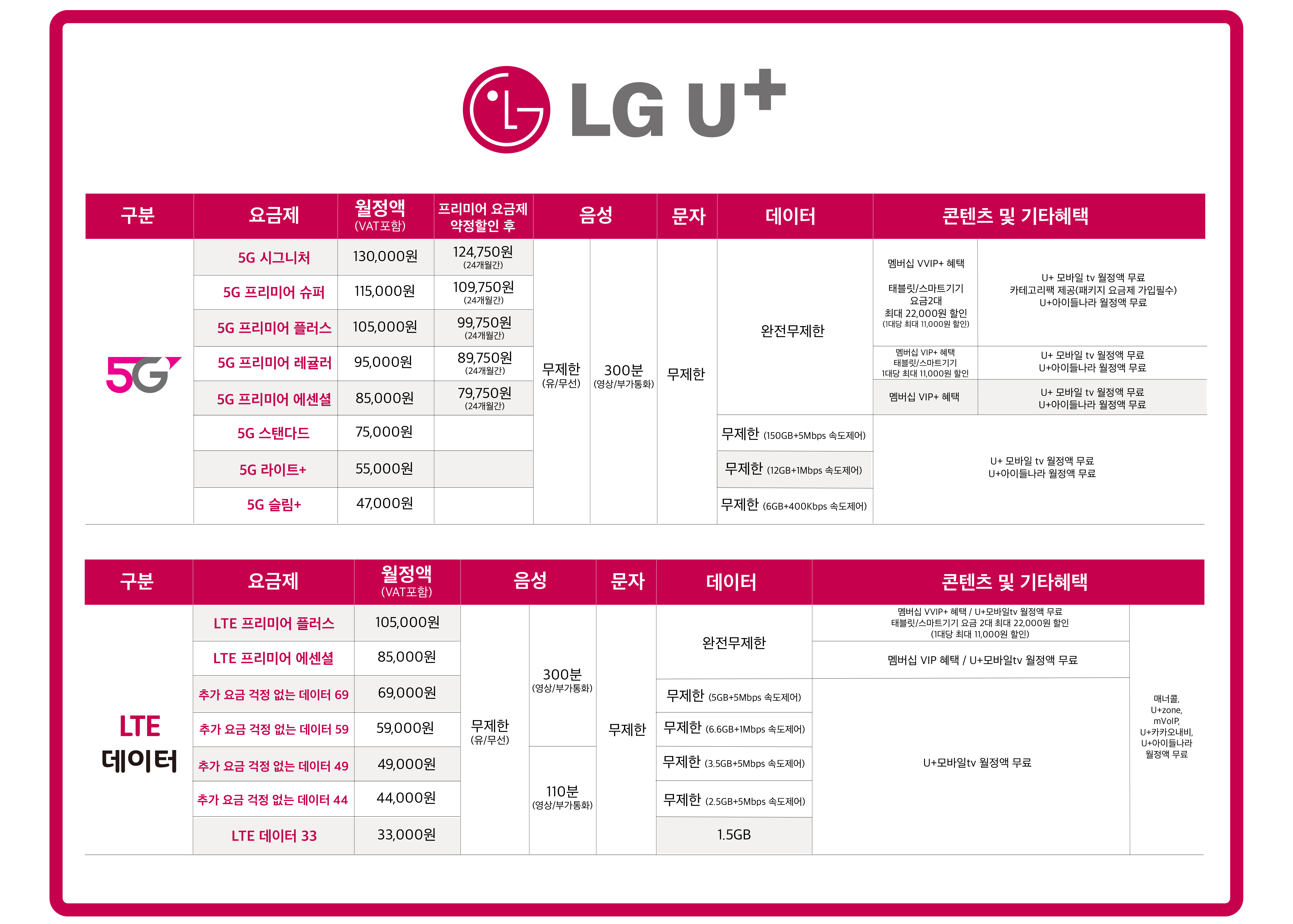 24개월 24개월 123,654 원 슈퍼플랜 스페셜 전화 무제한 / 문자 기본제공 / 데이터 무제한
