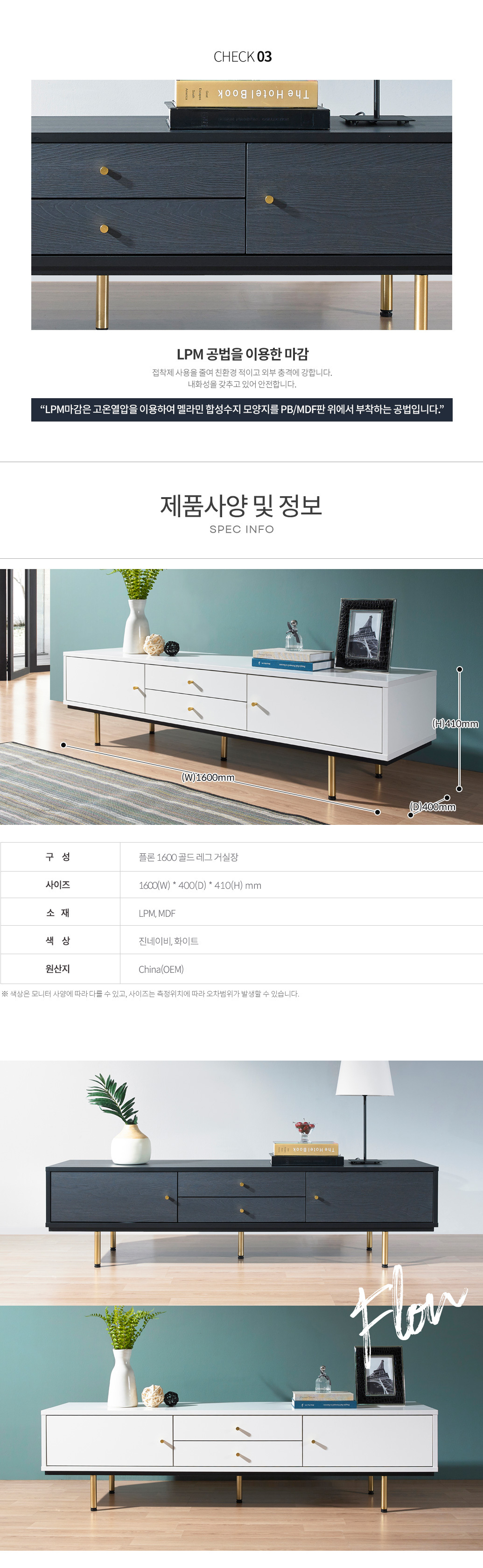 • [제작가구] 플론 1600 골드 레그 거실장 화이트 플론 1600 골드레그 거실장 화이트