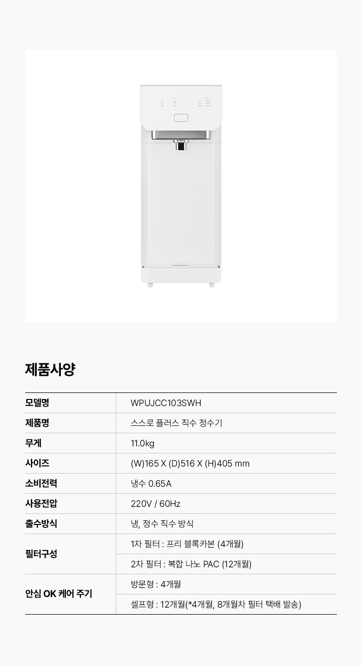 • [SK매직] [SKmagic]SK매직 스스로 직수 플러스 정수기 렌탈 WPU-JCC103 WPU-JCC103